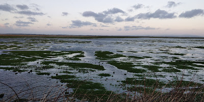 Looking out from Nel's I could see a few hundred lapwings on the far bank by the golf course. Over towards Marshside Road, where the ground's higher, there were flocks of wigeon and black-tailed godwits. A couple of great black-backs flew in but didn't settle.