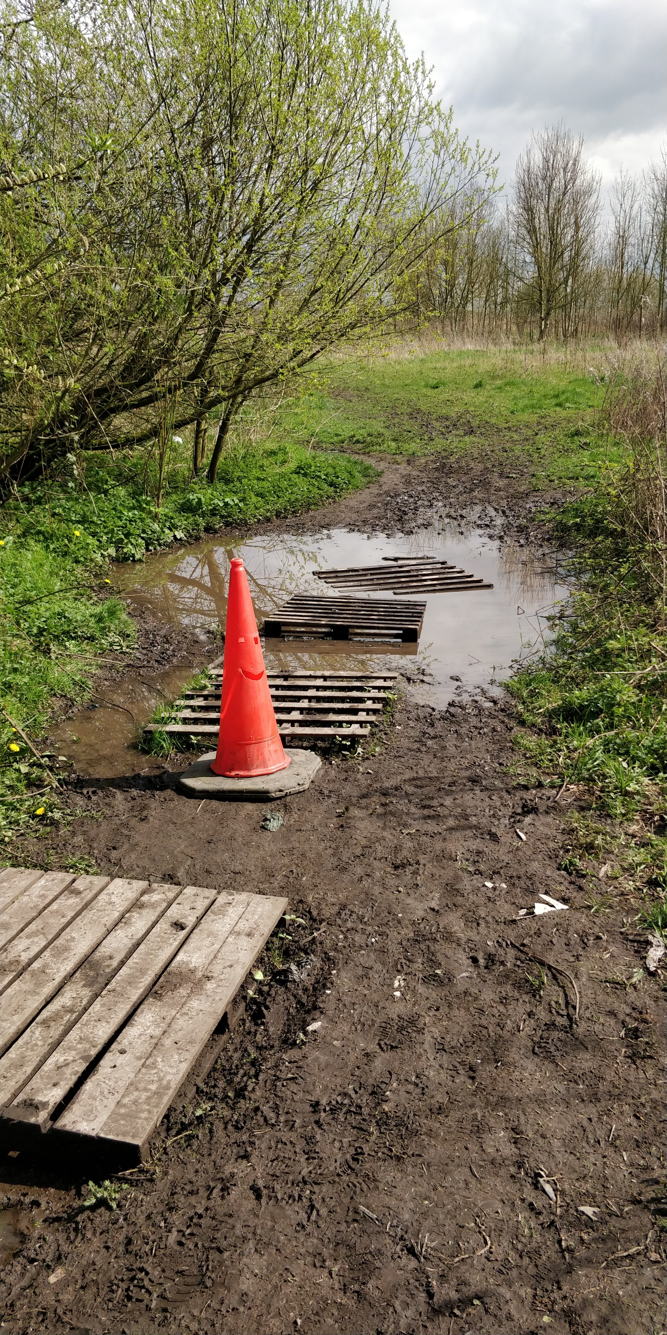 I decided not to take the first turn onto the meadows. The second wasn't so spectacularly awful but still unwalkable. Further along a gap in the fence offered a slightly muddy path winding through the birches and onto the main path South of the mound via a running stream through a stand of willowherb that provided a chance to clean my boots. All the while chiffchaffs, song thrushes, blackbirds and a blackcap sang in the trees by the path and robins sang in the birch scrub. The hawthorns and blackthorns are now coming into leaf and suddenly everywhere is green, a hint of the challenges to come in Summer when most small birds are seen only as the passing shakings of leaves and twigs.
