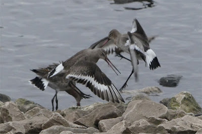 | The black-tailed godwits were in a scrappy mood, fights breaking out every couple of minutes |