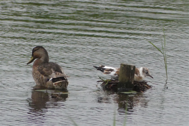 I had Lilian's Hide to myself, a pleasant novelty. The black-headed gulls were noisy and fidgety and will soon be taking their kids further afield. The coots crowded in their corner, the mallards and gadwalls skulked by the reeds. Greylag geese, a great crested grebe and a shelduck cruised about. In the distance I could see the great black-backs have two youngsters in their platform nest.